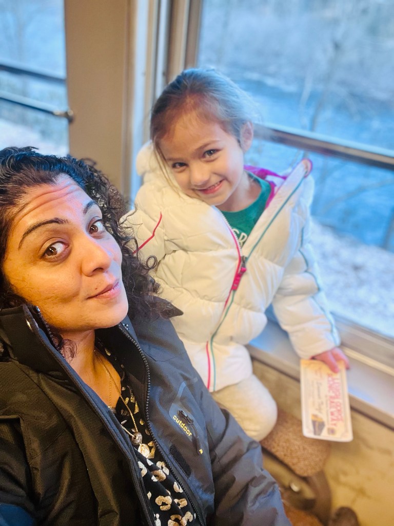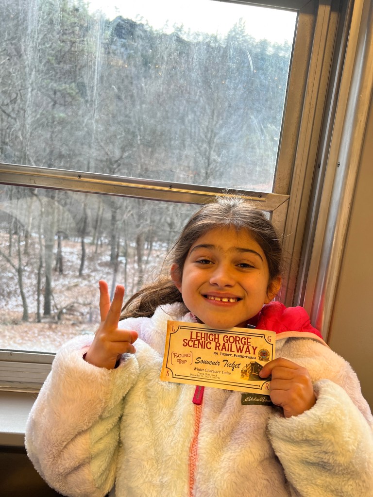 Growing up, my parents never let me try thing they considered dangerous or scary. Needless to say, I’ve been a scaredy-cat my entire life and I try to work through it, but fear is something I don’t want my kids to possess. I’ve always wanted to ski, but my fear of height sets me in a panic. We set off to the Poconos and had an Air B&B in Jim Thorpe. The journey took 2 hours. We love exploring new cities so we did the Lehigh Gorge Scenic Railway. It was a fun train ride, temperature controlled cabin, and the sights were beautiful. Also train was not crowded so my crazy two were free to run around the cabin.